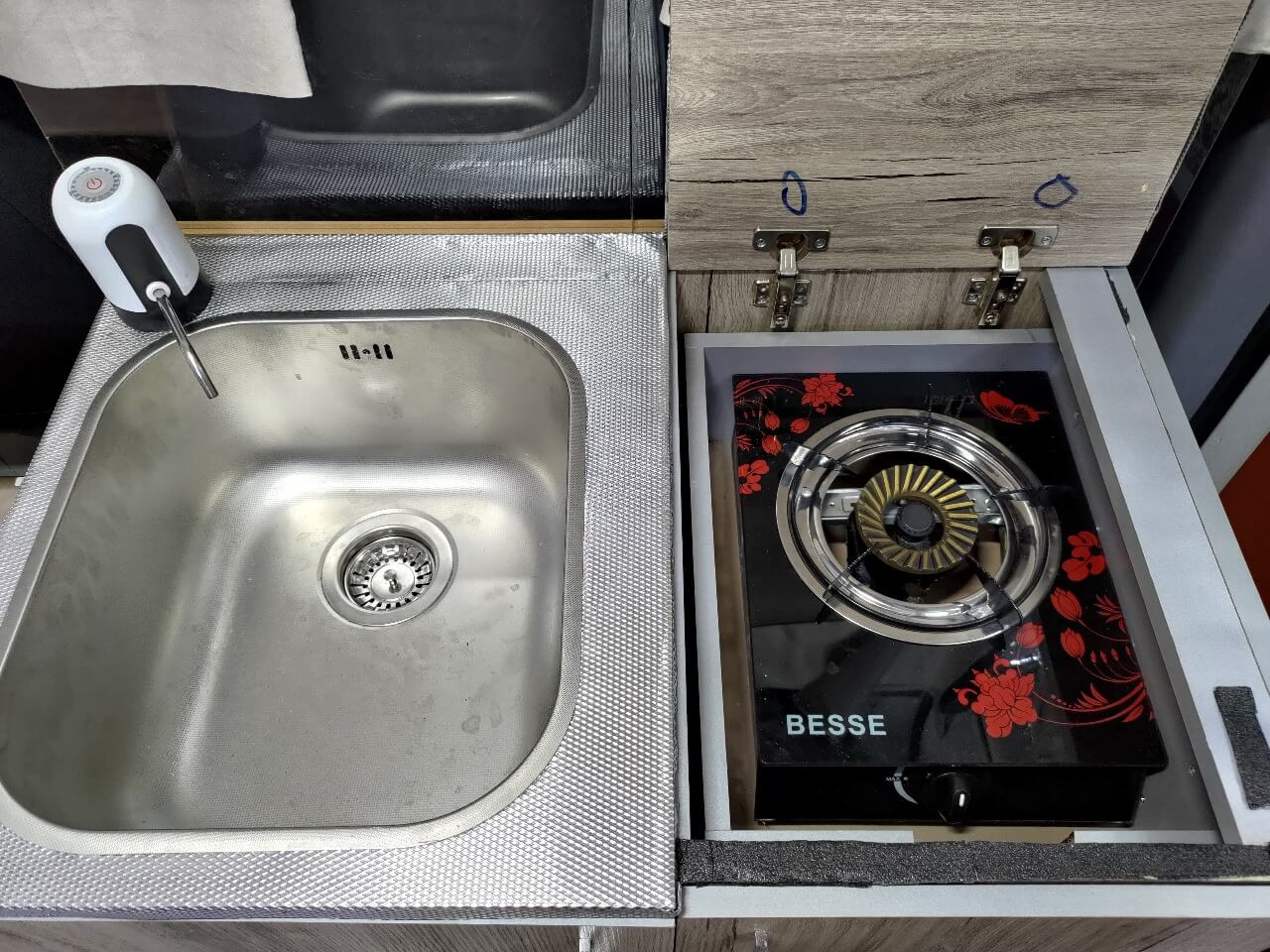 A lot of space, height inside 195 cm, possible to put a 3rd bed inside