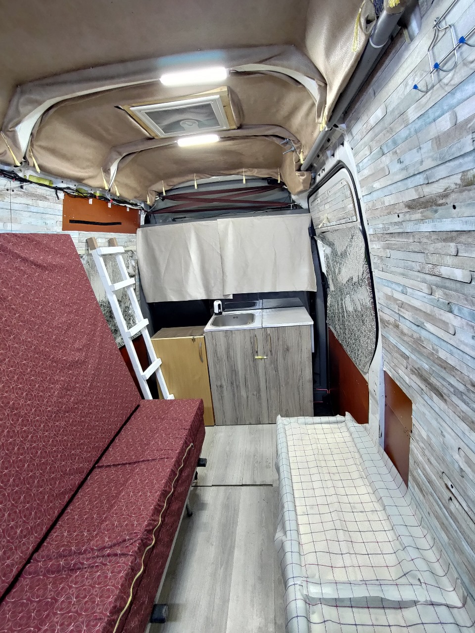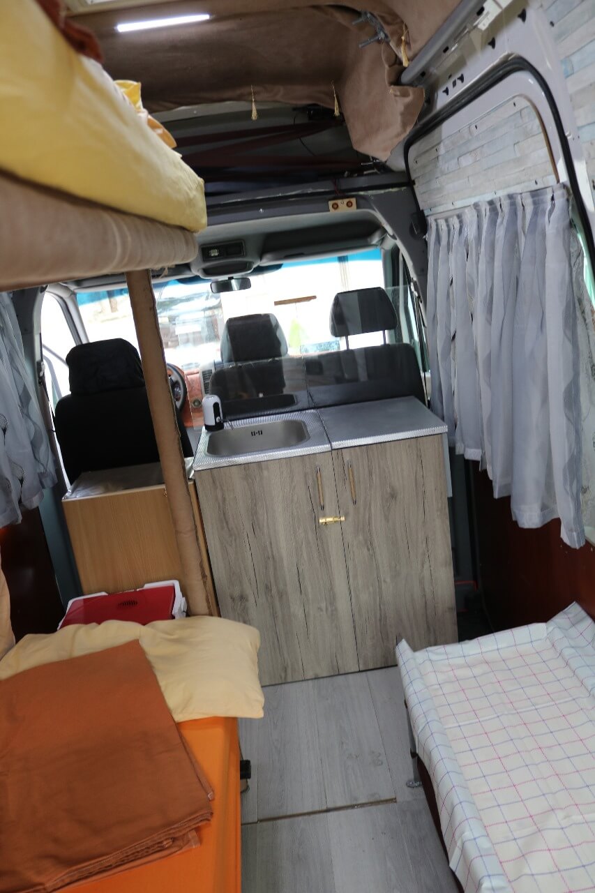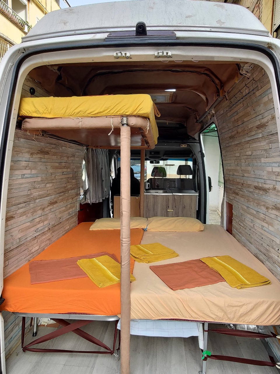A lot of space, height inside 195 cm, possible to put a 3rd bed inside